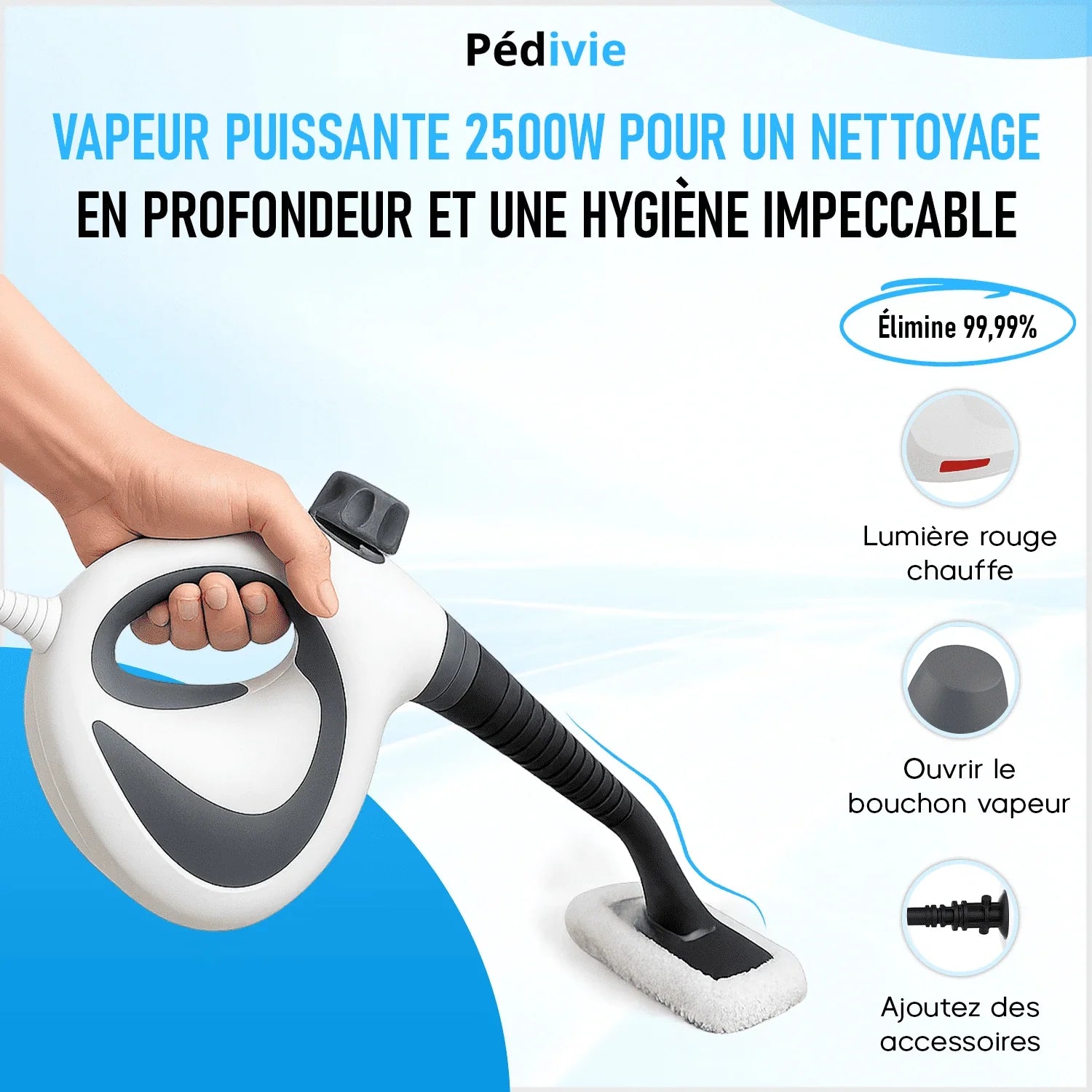 Vědecky prokázáno: Odstraňuje 99,99 % bakterií, virů a nepříjemných pachů bez chemikálií! Tento výkonný parní čistič využívá suchou přehřátou páru o teplotě +100 °C – účinnější než tradiční čisticí prostředky.